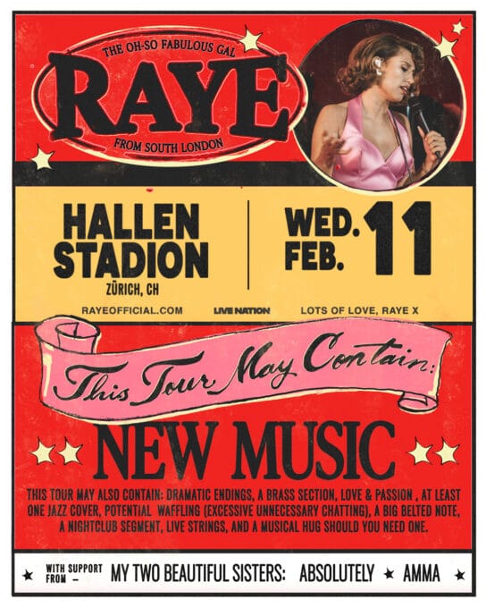 Mid-February gots a serious concert upgrade: British powerhouse RAYE hits Hallenstadion Zürich on Wednesday, 11. Februar 2026, as part of her This Tour May Contain New Music run.
