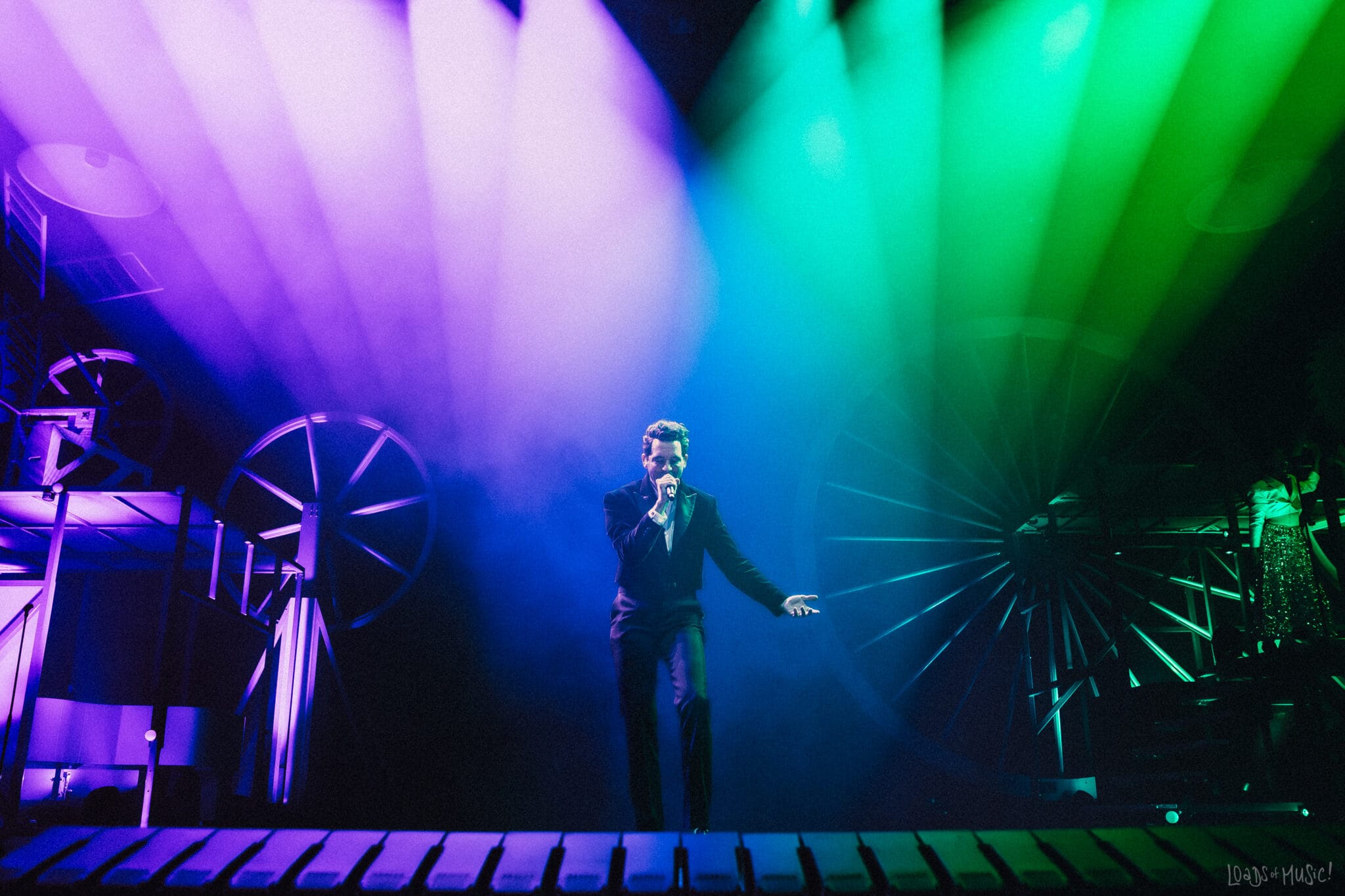 When it was Mikas turn to take the stage, the crowd exploded. The production and stage design was playful, theatrical, and wonderfully over the top. A giant gear mechanism thingie spun above the stage that actually brought Mika down to the stage. A massive megaphone loomed like a prop from a pop-art dream, and at one point Mika performed on top of three-story piano.